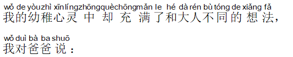 我的幼稚心灵中却充满了和大人不同的想法,我对爸爸说: