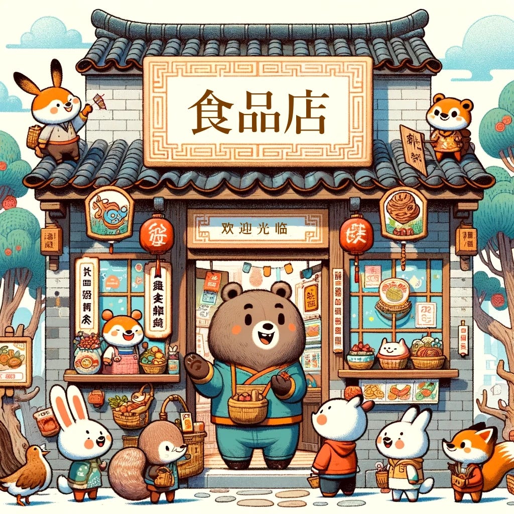 到店里买东西的顾客全是兔子。(all 全 the customers 顾客 going 到 shopping 买东西的 in the store 店里 were rabbits 是兔子.)