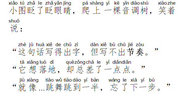 小图眨了眨眼睛,爬上一棵音调树,笑着说: