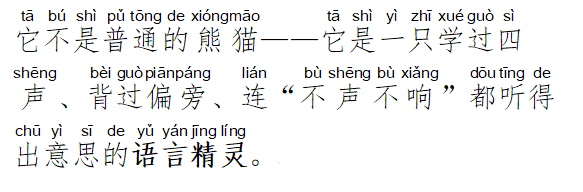 它是一只 (it’s a) 学过四声 (panda who studied the Four Tones)、