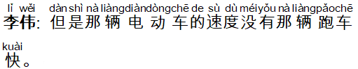 李伟: 但是那辆电动车的速度没有那辆跑车快。
