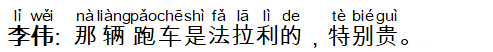 李伟: 那辆跑车是法拉利的,特别贵。