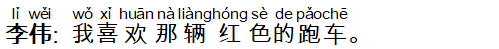 李伟: 我喜欢那辆红色的跑车。