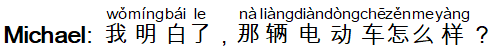 Michael: 我明白了,那辆电动车怎么样?