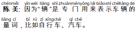 陈美: 因为“辆”是专门用来表示车辆的量词,比如自行车、汽车。