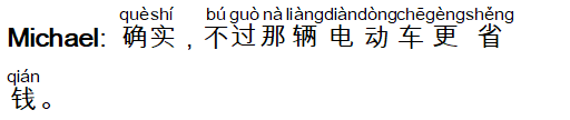 Michael: 确实,不过那辆电动车更省钱。