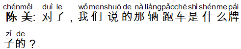 陈美: 对了,我们说的那辆跑车是什么牌子的?