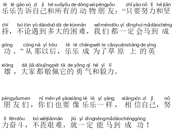 朋友们,你们也要像乐乐一样,相信自己,努力奋斗,不畏艰难,就一定能马到成功!