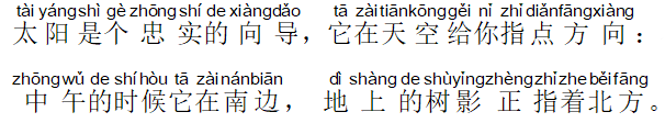 时 (shí) – time, 时间 (一天中的时间对利用太阳辨别方向至关重要。)